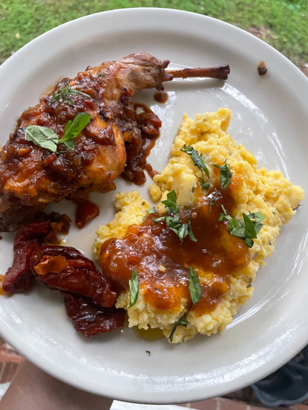 We served it with her recipe for Parmesan Polenta, which can be found here.
