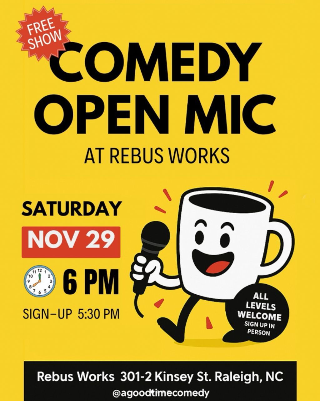 Saturday, 11/29, 6-8pm: Comedy Open Mic with A Good Time Comedy