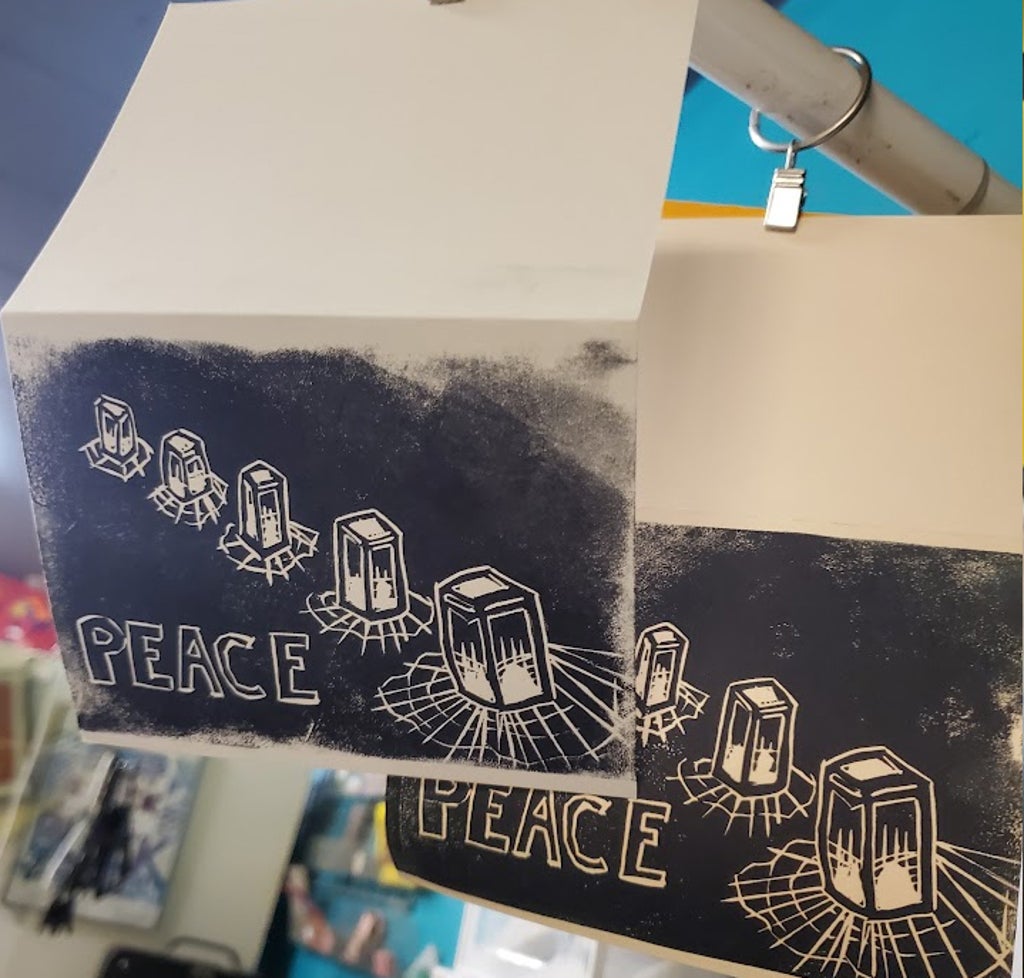 Friday, December 5, 4:00 PM: Come Block Print Your Own Holiday Cards and get them in the mail before all those pesky postal deadlines! Send friends and family a unique card with a handmade touch without drawing dozens of individual cards! Printing progresses! What a cheat! :D 💌