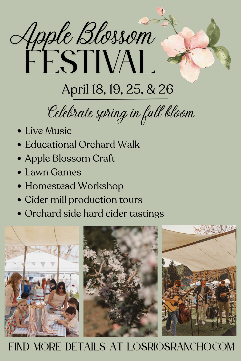 Come enjoy a day in the country at our Annual Apple Blossom Festival! There’s something for everyone—kids’ crafts, educational workshops, orchard walks, carriage rides, cider production tours, live music, and more.